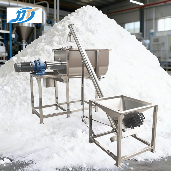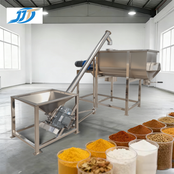 This horizontal food powder mixer is constructed from food-grade stainless steel and features a built-in feeding hopper and a dual-motor drive system. It is engineered for rapid, homogeneous blending of dry food powders and fine granules, such as seasoning mixes, flour, nutritional powders, and beverage bases. The design ensures hygienic operation, easy cleaning, and reliable performance, making it an efficient solution for modern food processing and powder productionlines.