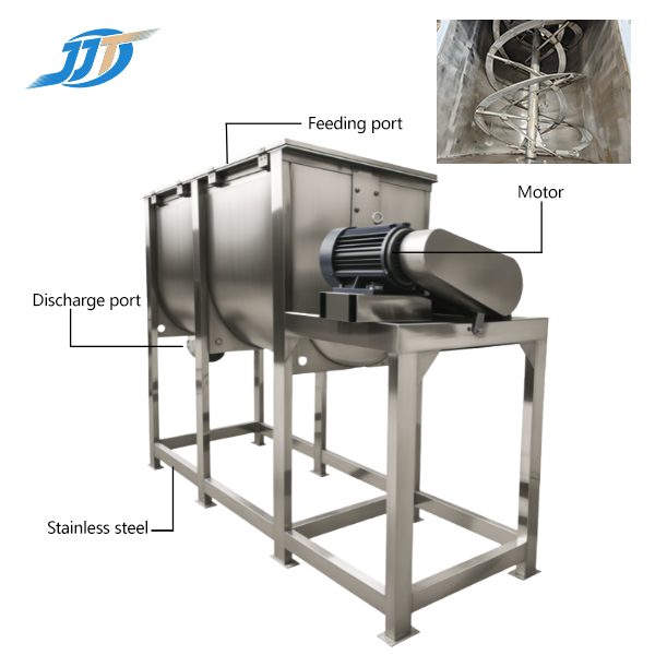 This horizontal stainless steel spice mixer is ideal for uniformly blending a wide range of dried spices, herbs, seasoning powders, and granules. It is commonly used in the production of seasoning blends, soup bases, snack coatings, culinary mixes, and functional food ingredients, ensuring hygienic, consistent, and efficient mixing for the food industry.
